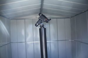 Základním předpokladem úspěšného pozorování (a tedy i fotografování) hvězd a planet je obloha bez mraků. Jenomže počasí je nevyzpytatelné a často se může rychle změnit. Když tedy máte náhodou volný čas a naplánujete si pozorování, může se objevit (a většinou se i objeví) nějaký ten mrak a práce s přípravou pozorování byla zbytečná. Abych tedy nemusel všechno potřebné pro pozorování neustále vynášet ven a po chvíli kvůli oblačnosti zase uklízet, rozhodl jsem se pro stavbu přístřešku pro dalekohled. Pochválena budiž lenost, která posouvá lidskou společnost neustále kupředu. I mně moje lenost pomohla k tomuto rozhodnutí. Začal jsem tedy s teoretickou přípravou. Přečetl jsem stovky článků na téma „jak postavit malou hvězdárnu“ (od jednoduchého přenosného krytu na dalekohled, až po obytná monstra s odsuvnou střechou). Nakonec jsem se rozhodl pro kompromisní řešení s koupeným zahradním domkem 2 x 2,3 m a dal jsem se do toho.