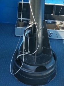Detail připojení veškeré elektroniky do rozvodného panelu – vývod kabelu dálkového ovládání u paty pilíře – propojeno s PC.